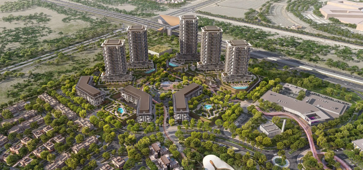 With prices starting from AED 1.35M, the tower features efficient layouts, expansive windows, and environmentally conscious systems, including LEED Platinum pre-certification, smart home integrations, and EV charging infrastructure. Its strategic position between Emirates Road (E611) and Sheikh Zayed Bin Hamdan Al Nahyan Street (D54) ensures smooth connectivity to key destinations across Dubai while maintaining a calm, residential atmosphere.