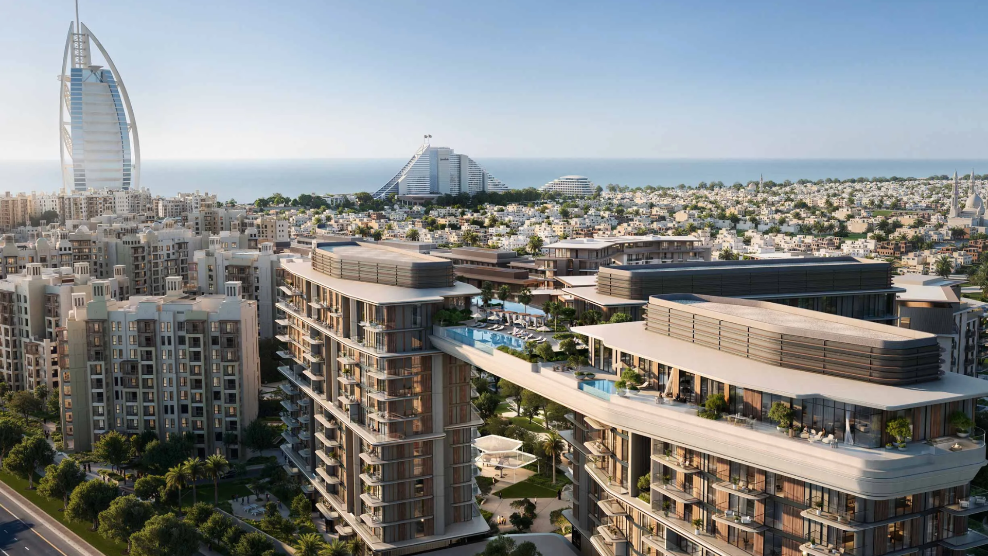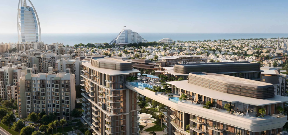 • Starting from AED 3.68 Million • Projected ROI of 6–7% • Developed by Meraas • Premium 1 to 4-bedroom apartments • Freehold property in Jumeirah • Located in Madinat Jumeirah Living, opposite Burj Al Arab • Iconic skybridge featuring sky gardens and infinity pools • Golden Visa eligibility for investments of AED 2 Million and above